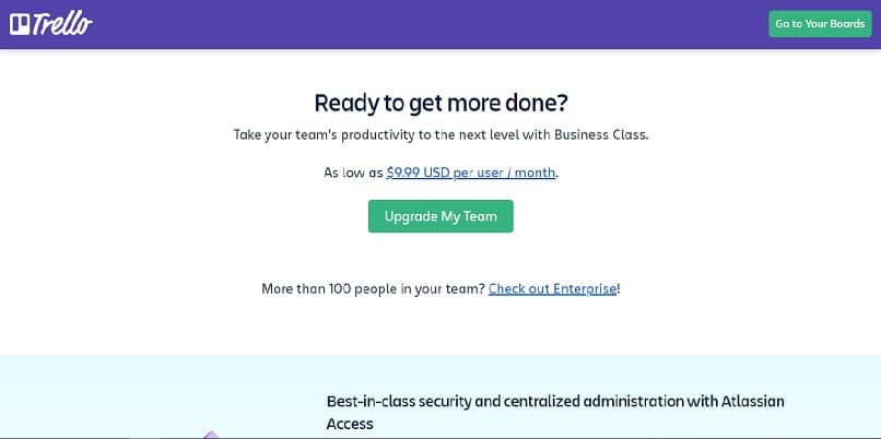 Tällä tavalla, Trellolla on kaksi maksullista suunnitelmaa, Ensimmäinen on Executive ja sen kuukausimaksu käyttäjää kohti on alle 10 euroa. Vaikka tiimisuunnitelman kuukausittainen alkuarvo on 20,83 euroa, vaikka tämä määrä pienenee sisällytettävien osallistujamäärien mukaan.